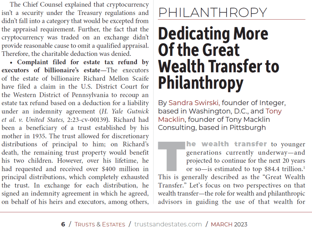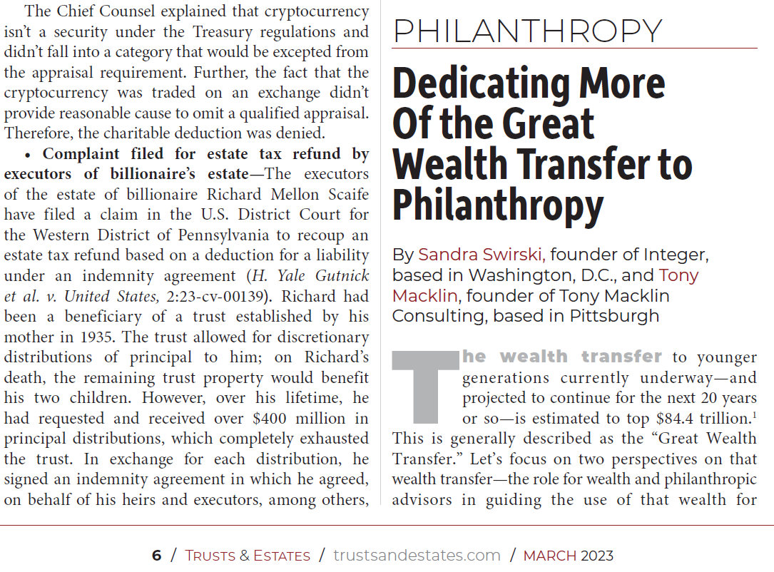 I was invited to co-author an article for the March 2023 issue of Trusts & Estates.